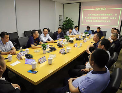 11月18日下午,江西省石城县政协副主席、县工商联主席赖继红,石城县赣江源镇镇长熊媖、副镇长温荣华,以及江西石城赣江源商会会长赖敏华带领的商会代表团一行到访九游网页版登录入口本部,与集团董事长、总裁李平在大会议室座谈交流。