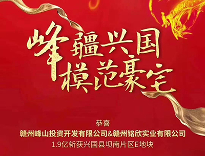 喜报!9月19日,集团赣州市峰山投资开发有限公司,联合赣州铭欣实业有限公司竞得兴国县坝南片区E地块,成交总价19170万元,折合楼面地价约为1867.6元/㎡。